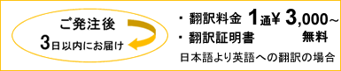 | 翻訳期間 | 配送料金 | 受注後2日以内 |